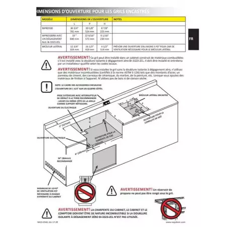 Dimensions du barbecue gaz encastrable : L 82 x P 63,5 x H 63 fermé / 73 cm ouvert