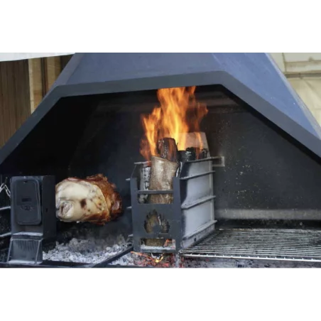 Vous aurez aussi la possibilité de varier les plaisirs en suspendant une marmite à la potence prévue à cet effet (incluse avec le barbecue) ou en utilisant un wok (option). Le compartiment avec porte situé sous le foyer principal pourra faire office de four!
