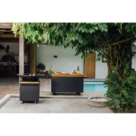 Le OFYR CLASSIC BLACK 100 PRO est la dernière évolution de la gamme des braseros OFYR avec ses 4 roulettes et sa belle poignée latérale en teck