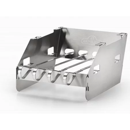 Utilisé comme rabat, il empêche les aliments de pouvoir tomber dans le boitier du brûleur. Il sert également de support à brochettes (4).